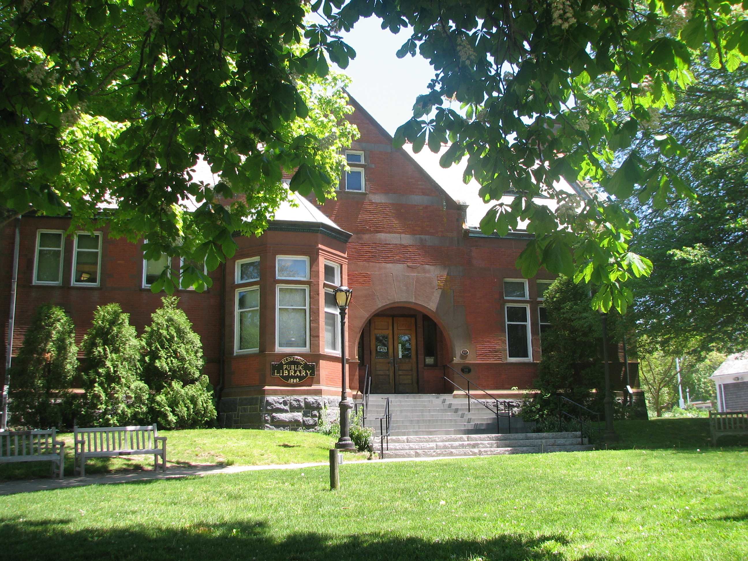 Architect Albion M. Marble of Fall River, a student of H. H. Richardson, designed the original 67' by 34' building in the Renaissance/Romanesque Revival Style, with Quincy granite foundation, red West Barnstable brick walls with pink mortar, Longmeadow brownstone trim, a slate roof with terra cotta cresting, and eyebrow dormers. The interior was finished with quartered oak wainscoting, a carved oak fireplace mantle, Italian marble mosaic in the vestibule, and two stained glass windows with solid medallion facsimiles of the marks of L. Giunta and Aldus, both early Italian book crafters.