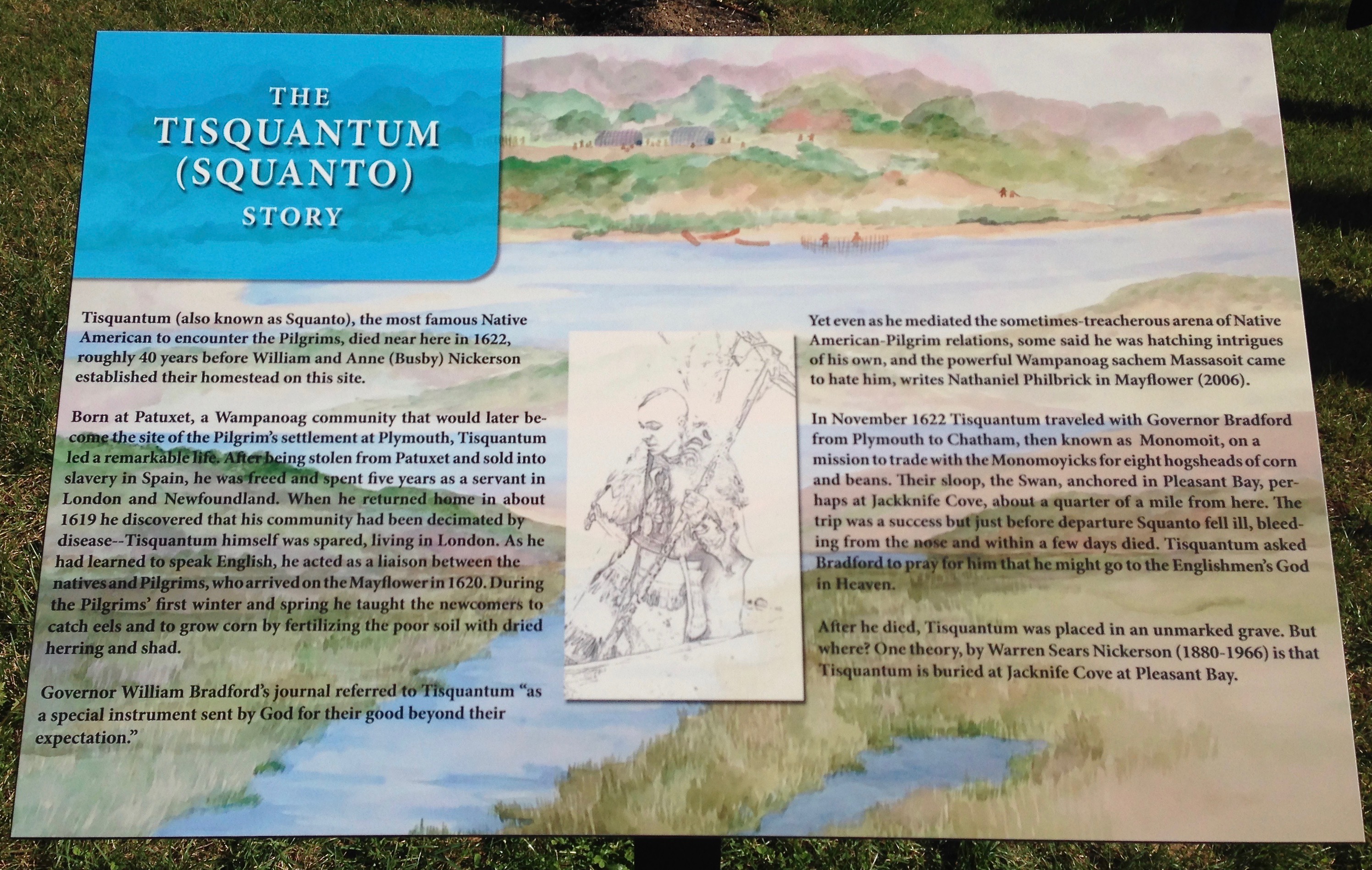 This plaque located at the Nickerson Homestead, tells the story of Tisquantum (Squanto).